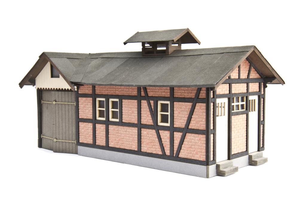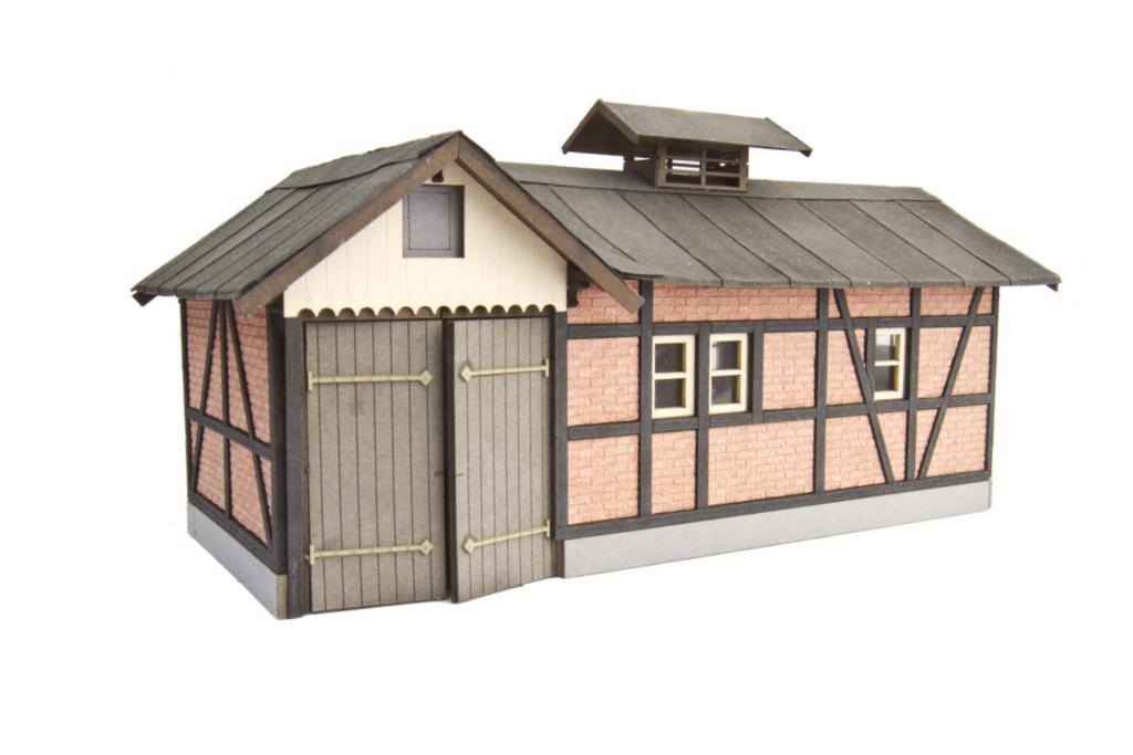 Neu ist auch die Wagenremise aus Ziegelmauerwerk. Sie hat innen einen Steinboden und kommt mit detailliert gelaserten Türen und separaten Beschlägen. Der Bausatz kostet 95,- Euro. Das Besondere sind die bereits gefärbten dreidimensional gelaserten Ziegel, die ein schon leicht verwittertes Ziegelmauerwerk nachbilden.