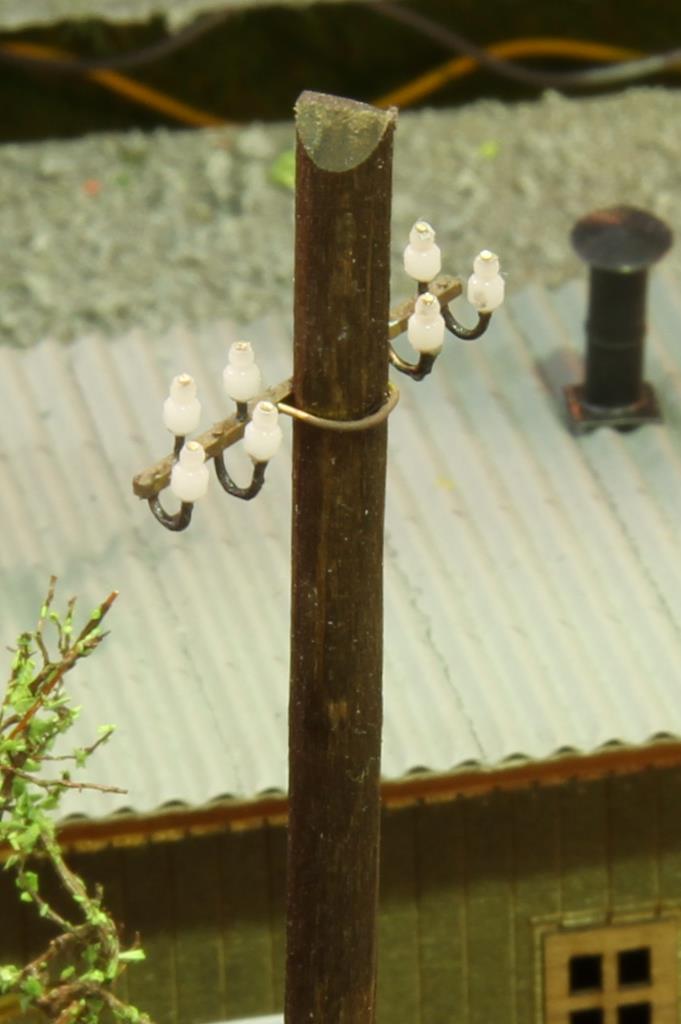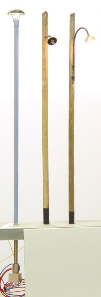 IMS bietet die typische DDR Leuchte „Salatschüssel“ für 35 Euro und Holzmastleuchten ab 15 Euro. Der Telegrafenmast mit gerillten Isolatoren kostet 25 Euro.
