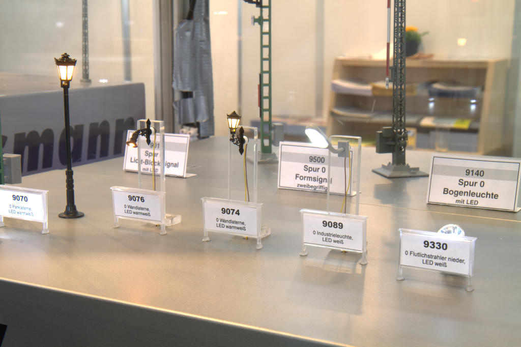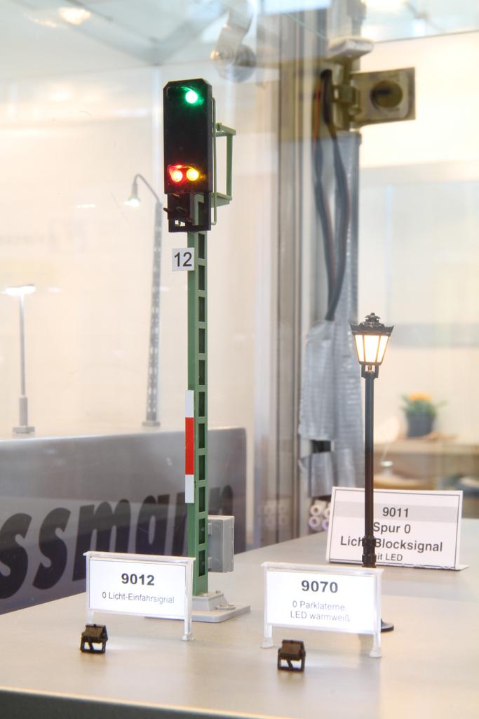 Neben den Signalen waren auch einige Leuchten zu sehen, die im ersten Quartal 2013 erscheinen sollen. Die Parklaterne mit warmweißer LED wird 24,95 kosten, die dazu passende Wandlaterne 9,90 Euro. Die etwas kleinere Wandlaterne 9076 und die Industrieleuchte 9089 kosten jeweils 8,90 Euro. Ein Flutlichtstrahler für 10,95 Euro ergänzt die Neuheiten.