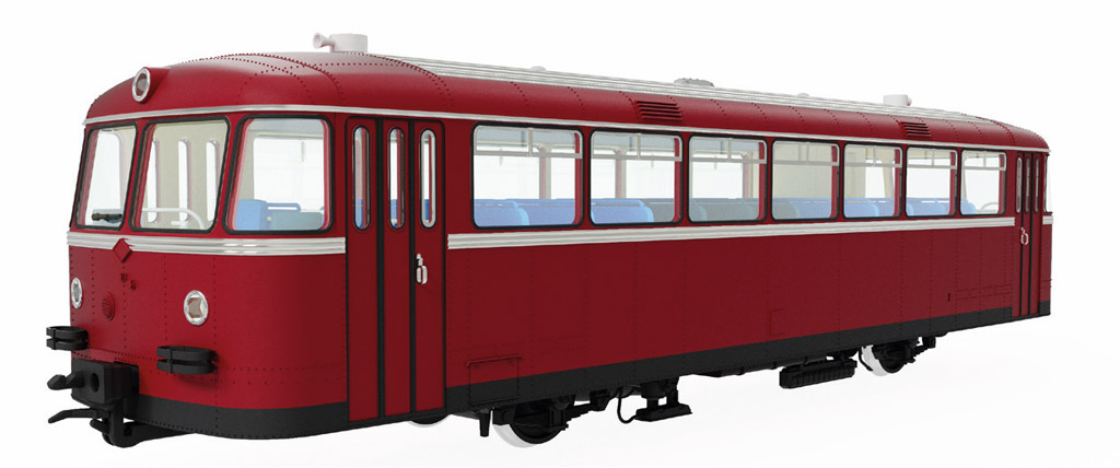 Der bereits angekündigte Schienenbus der ersten Generation wird um ein paar Varianten erweitert: Zu den bereits gelisteten Versionen kommen solche ohne Dachfenster und mit integriertem Dreilicht-Spitzensignal in Epoche III und IV. Dazu kommt ein Triebzug der AKN bzw. EBOE mit verschlossenen Dachfenstern und aufgesetztem Spitzenlicht, bestehend aus Schienenbus AKN VT 3.12 und Beiwagen AKN VB 3.091, exklusiv über den MEG-Shop erhältlich.