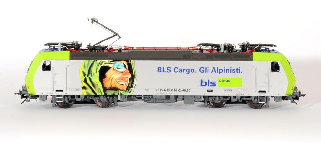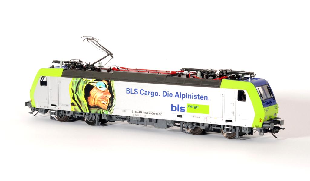 Die Lok 485 003 ist die einzige mit den Aufschriften ‚Die Alpinisten‘ – ‚Gli Alpinisti‘ innerhalb der Serie 485. Alle andern Loks dieser Serie tragen die Aufschrift ‚Connecting Europe‘. Anlässlich des großen BLS-Festaktes Ende Juni in Frutigen in der Schweiz wurde das Modell vorgestellt und ist jetzt in Auslieferung.
