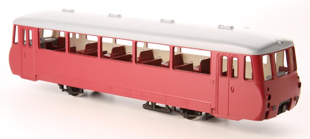 Die Triebwagen kamen ab 1959 in der damaligen DDR zum Einsatz und rollten bis 2004. Das Modell wird in allen Lackierungsversionen der Epoche 3 bis 5 erscheinen. Das Set mit Motor- und Steuerwagen soll 1700-1800,- Euro kosten und Anfang 2013 verfügbar sein. Die Fertigung erfolgt in Deutschland.