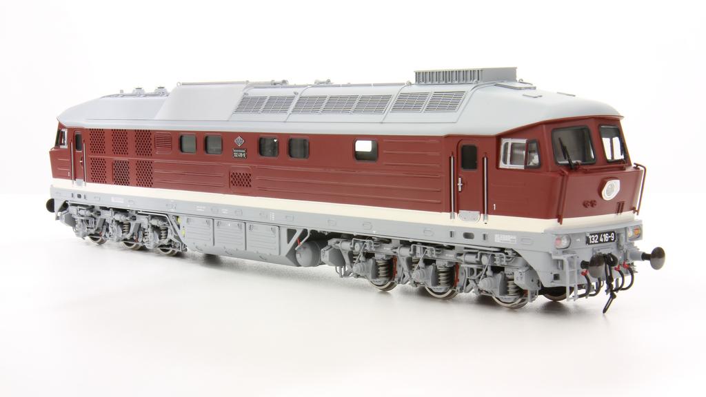 Die unterschiedliche Dachausrüstung und andere Detailunterschiede der verschiedenen Versionen in DR und DB AG sind akkurat nachgebildet. Die Loks sind mit Zimo Großbahndecoder ausgestattet und kommen mit Sound- und Beleuchtungspaket. Der Antrieb erfolgt über Helmig Getriebe, die Räder in den Drehgestellen sind einzeln abgefedert. Das Modell kostet 3.395 Euro. Auf dem Regionaltreffen in Sande 2012 war es in Aktion zu sehen,