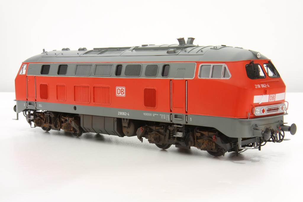Auch die vor etlichen Jahren bereits angekündigte und als Handmuster präsentierte BR 218 war in Epoche 5 Lackierung zu sehen. Das Modell in Analogausführung mit zwei Motoren und Helmig/Demko Getriebe soll 1799 Euro kosten. Alle Lackierungsvarianten von Epoche 3 bis Epoche 5 sollen umgesetzt werden.