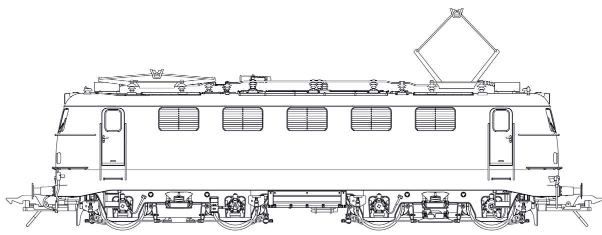 Eine Überraschung ist die Ankündigung der ersten Elektrolokomotive. Die Baureihe E41 aus der Reihe der Einheitsloks wurde im Rahmen des umfangreichen Neubauprogramms nach dem Krieg ab 1956 gebaut. Sie war als Mehrzwecklokomotive für den leichten Schnell-, Personen- und Güterverkehr gedacht und war auch auf Nebenstrecken unterwegs. Mit 451 gebauten Exemplaren war sie weit verbreitet und bis ins Jahr 2006 im Einsatz. Das Modell bekommt neben den Standardfeatures ferngesteuert heb- und senkbare Pantographen.