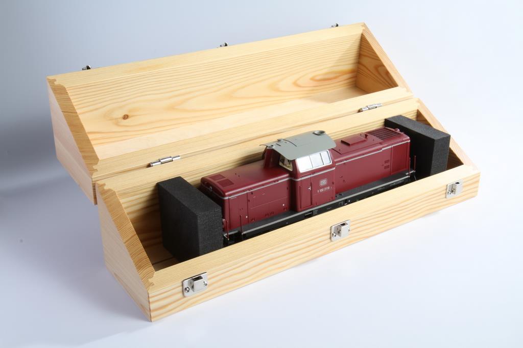 Ich bin nicht sicher, ob die befahrbaren Kisten, die in den Kommentaren genannt wurden, immer notwendig sind, man braucht ja ein passendes Anschlussgleis, das nicht jeder hat, den man mit der Lok besucht. Zudem bin ich nicht sicher, ob das ungepolsterte Gleis am Boden immer optimal ist, denn am ehesten bekommt die Transportkiste doch einen harten Stoß von unten, bei hartem Aufsetzen, oder im schlimmsten Fall, bei einem Sturz der Kiste. Diese Kraft wird dann ungedämpft auf die Räder und damit die ganze Lok übertragen. Ich habe mir Transportkisten mit Klappdeckel und einer klappbaren Seite gebaut, und auch den Boden mit Schaumstoff belegt. Schaumstoff muss eh je nach Lok zugeschnitten werden.