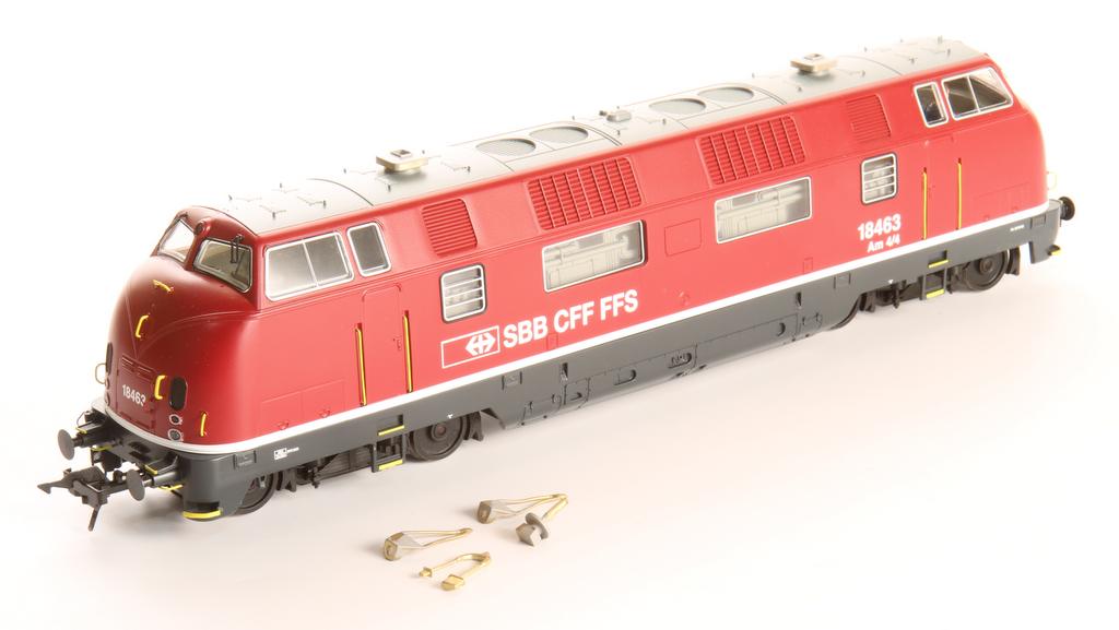 Im Angebot sind die abgebildeten Modelle oder auch solche nach eigenen Vorstellungen, die im Auftrag umlackiert werden, hier am Beispiel von MBW und Kiss Modellen. Auch kleine Formänderungen sind möglich: So bekommt die Schweizer AM 4/4 neue, vorbildentsprechende Lampengehäuse.