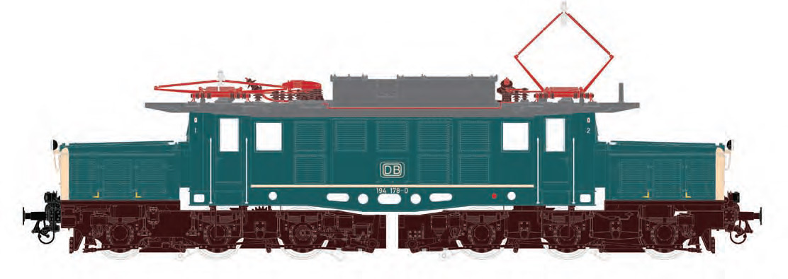 Besonders interessant ist aber die Ankündigung der E 94 / Rh 1020 in Österreich im Maßstab 1:45. Das Modell soll mit allen Unterschieden der deutschen und österreichischen Ausführung kommen. Besonders augenfällig sind die unterschiedlichen Frontfenster (2 in AT, 3 in DE), Seitenfenster und Lüfter, Stromabnehmer, und eine Reihe Aggregate am Lokkasten.