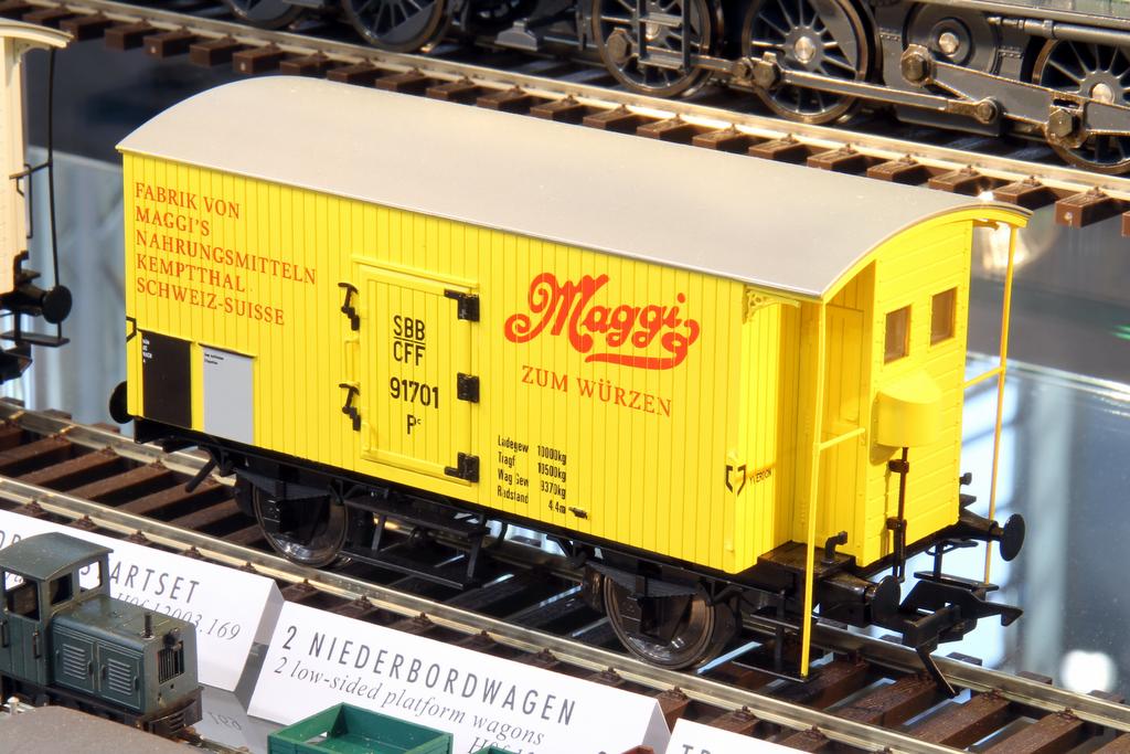 Auch von modernen Kesselwagen gibt es weitere Versionen: Ein grauer VTG und silberner Shell sollen noch mehr Abwechslung in Kesselwagenzüge bringen. Der Schweizer gedeckte Güterwagen K2 wird in knallgelbem „Maggi“ Gewand, und als Bierwagen „Bierbrauerei Falken“, „Brauerei Warteck Basel“, und „Schützengarten St. Gallen“ erscheinen. Bierwagensammler werden sich freuen.