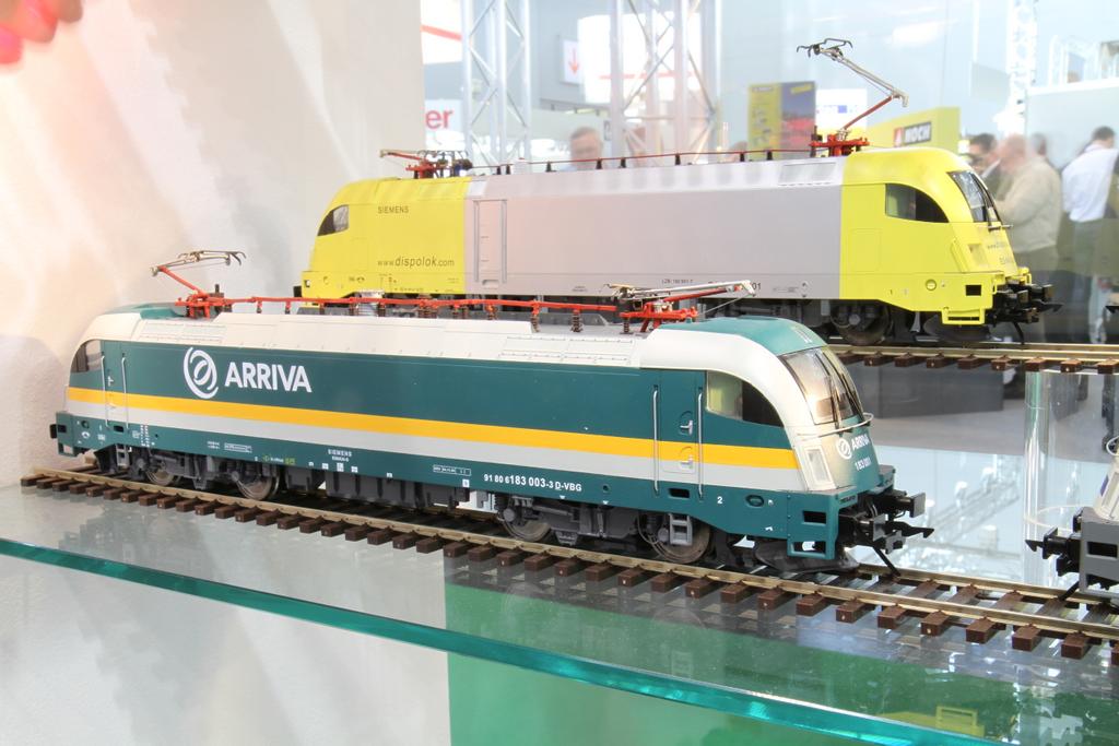 Die Arriva 183 zeigt im direkten Vergleich mit den farblich korrekten Loks (rechts) eine grüne Farbgebund und einen viel zu breiten gelben Streifen. Das entspricht überhaupt nicht dem hübschen Vorbild. Sehr schade, ich hatte mich schon auf das Modell gefreut und sogar zwei Exemplare erwerben wollen. Vermutlich wird hersteller- und beraterseits dem Aussehen schweizer Modelle mehr Aufmerksamkeit gewidmet.