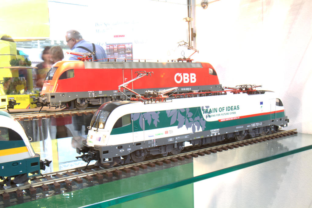 Die Traxx-Familie bekommt Zuwachs in Form der Re 485 der BLS Cardo aus der Schweiz in grau mit grünen Fronten und der BR 185.5. der MRCE Dispolok GmbH in schwarz. Der Euro Sprinter „Taurus“ kommt in der blauen Lackierung als BR 183 der Vogtlandbahn der Arriva Deutschland GmbH, als gelb-graue Reihe 1216.9 der Logistik Service GmbH in Linz und der bunten „Train of ideas“ der Siemens Transportation Systems. Moderne Loks sind schon ein dankbares Sujet für bunte Varianten.