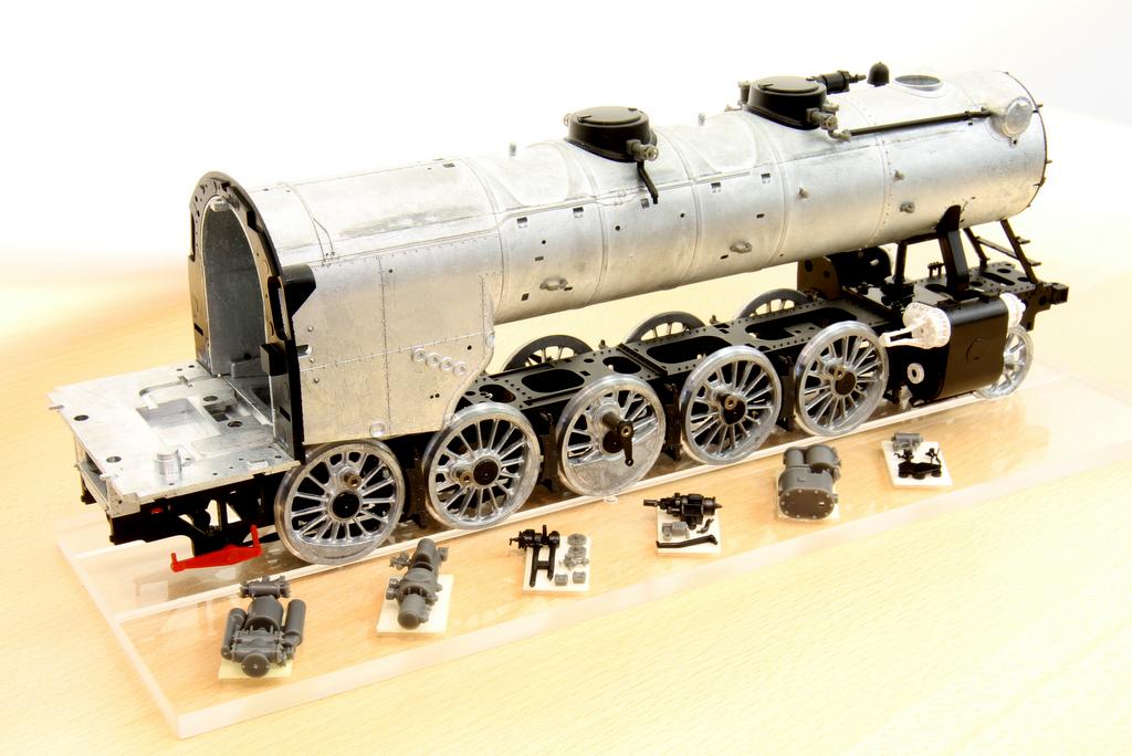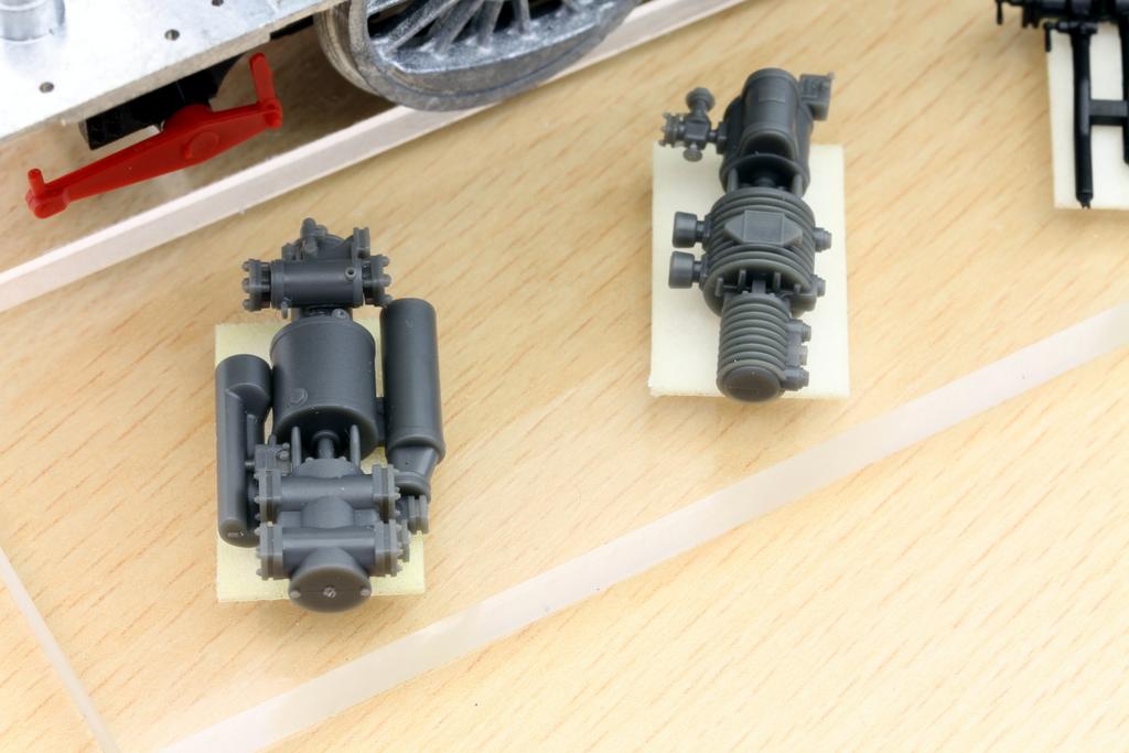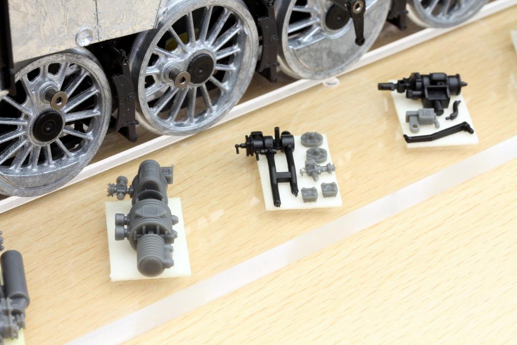 Von der Dampflok waren etliche neue Teile aus den Formen zu sehen. Neben dem Kessel waren das vor allem viele kleine und kleinste Gussteile, die einen enorm hohen Detaillierungsgrad erkennen lassen. Viele Aggregate sind aus etlichen komplexen Teilen zusammengesetzt, und man ist besonders stolz darauf, dass der Hersteller die Möglichkeiten der Detaillierung bis an die Grenzen des Machbaren gepusht hat – Kenner der Branche haben festgestellt, dass selbst Modelle der kleinsten Maßstäbe sich an den Pumpen der kommenden BR 50 etwas abgucken können. Das Modell soll Ende des Jahres fertiggestellt werden. Auch hier wird an einem „geheimen“ und innovativen Feature gearbeitet; wir dürfen gespannt sein.