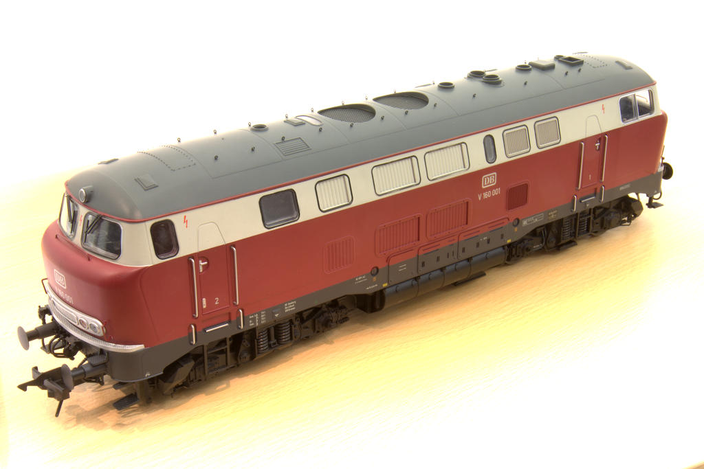Das Modell kommt zuerst in der schicken zweifarbigen Epoche 3 Lackierung, dann als Epoche 4 Variante. Das Innenleben entspricht weitgehend der V160. Nur der Sound wurde komplett überarbeitet, und es wird ein weiteres, noch nicht genanntes Extra in der Lok geben.