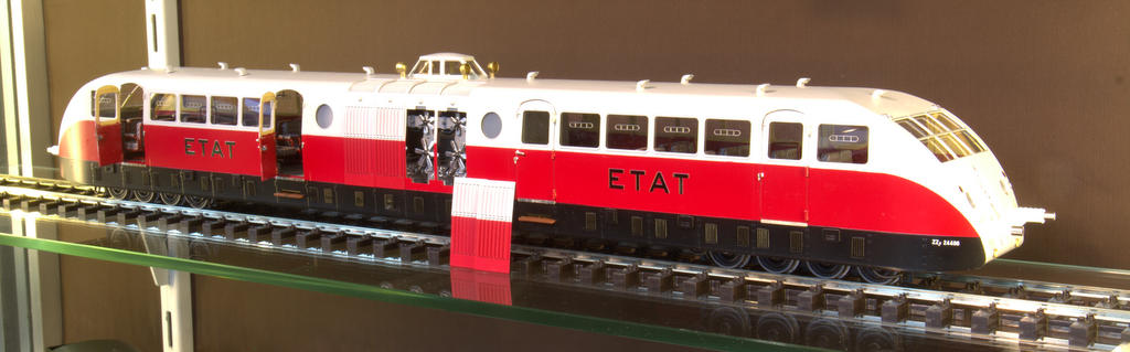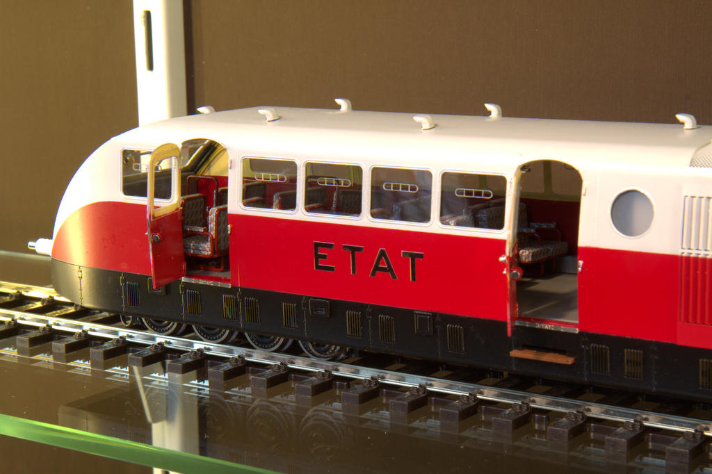 Der französische Triebwagen Bugatti Présidentel markiert das obere Ende der Detaillierung in Sachen Spur Null. Man beachte die Rahmen für die Sitze, die natürlich einen authentischen Sitzbezug erhalten haben, die Armlehnen, Innentüren, Scheibenlüftungen. Und erst die feinen, natürlich angetriebenen Lüfterräder im Motorraum. Viele weitere Details lassen sich entdecken.
