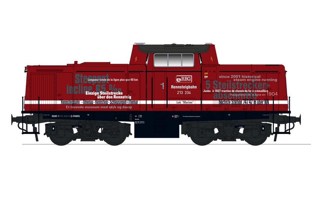 Und wie es der „Zufall“ will, steht eine weitere Lok der Rennsteigbahn auf der To-Do Liste im Hause Lenz: Die Fünfkuppler-Tenderlok BR 94.5 soll ebenfalls kommen. Damit auch die Vorbildloks in Betrieb geben bzw. bleiben können. Gibt es jetzt von Lenz die 50+50 Aktion: Dabei gehen von jeder verkauften BR 213 eine Spende von 50 Euro für den Wiederaufbau der BR 94.5, und die Firma Lenz legt noch einmal 50 Euro drauf. Die BR 213 kommt sowohl in vorbildgerechter Sonderlackierung „Marion“ als auch in roter Epoche 4 Standardlackierung und Beschriftung.