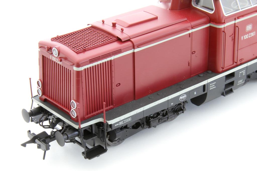 Die neue V100.20 von Lenz wird dieser Tage ausgeliefert. Die beim Vorbild leistungsstärkere Variante V100.20 (später als BR 212 und 213 bezeichnet) kam ab 1962 zum Einsatz und war nicht nur für Nebenbahnen, sondern auch für Hauptbahnen und Steilstrecken vorgesehen. 381 Loks wurden bis 1966 in Dienst gestellt. Trotz einer höheren Leistung von 1350 PS (1100 bei der V100.10) blieb es bei 100 km/h Höchstgeschwindigkeit.