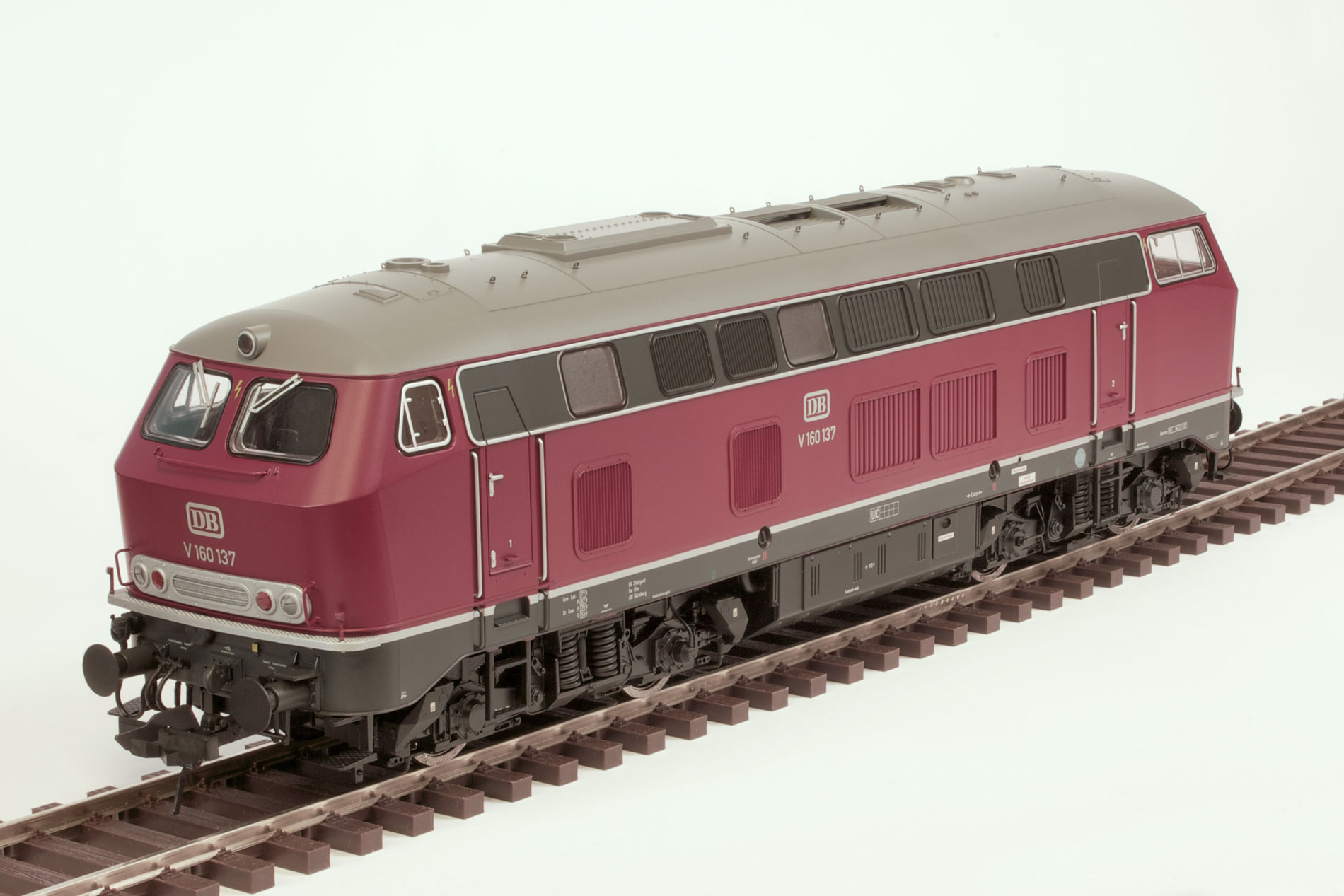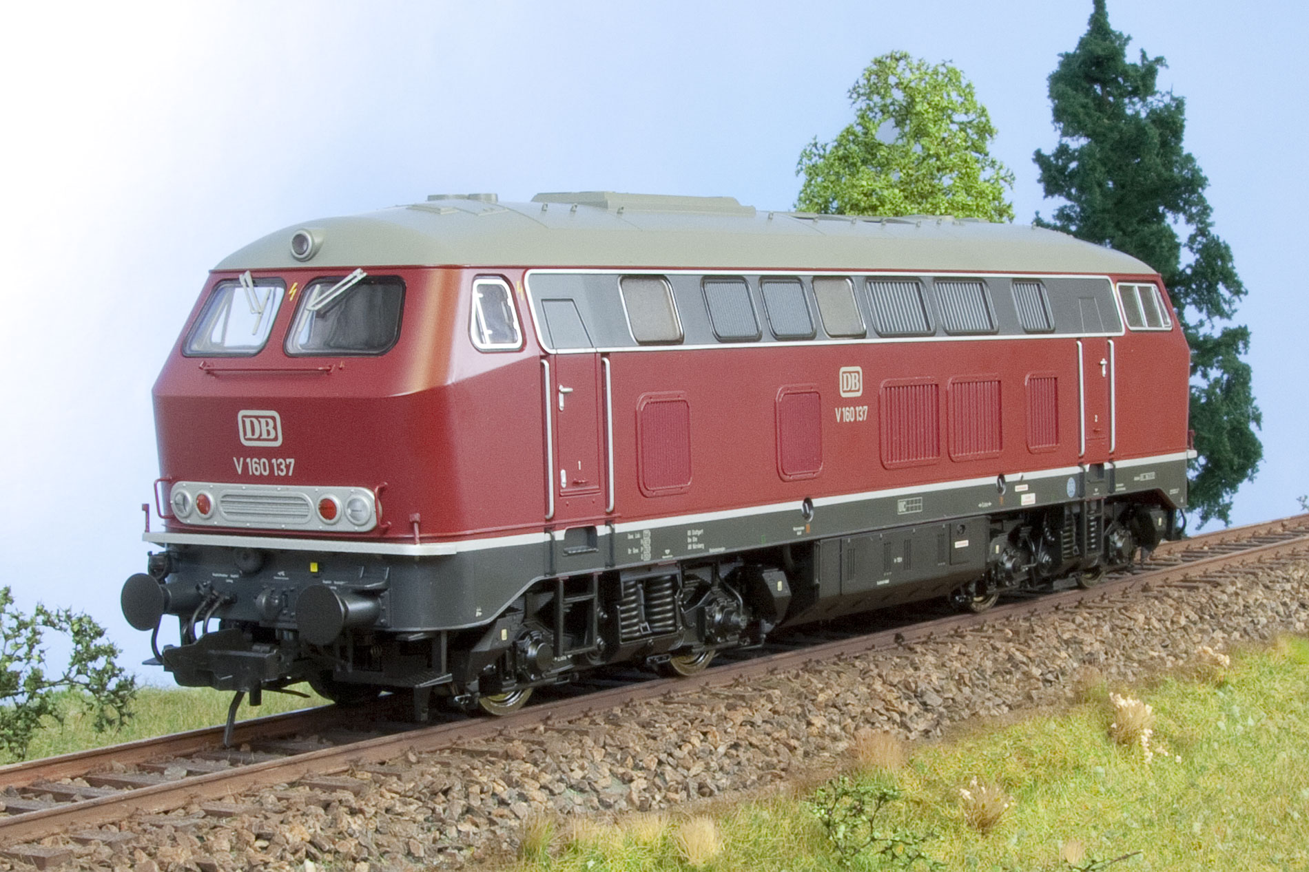 Anders als bei der BR 64, deren Erscheinen noch dieses Jahr angestrebt wird, gibt es für die V160 und entsprechend auch die BR218 keine Prognose zum Lieferdatum. Das Vorserienmodell zeigt sich bereits in kompletter Lackierung und mit allen angesetzten Details wie Griffstangen, Glocke an der Pufferbohle, und sogar Schlussscheibenhaltern, die trotz der roten Rücklichter beim Vorbild bis heute montiert werden.