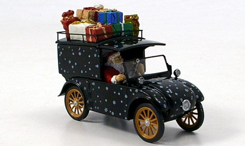 Für Kurzentschlossene und Liebhaber weihnachtlicher Miniaturen gibt es von Schuco den motorisierten Weihnachtsmann. Durchaus stilvoll und mit ordentlich Stauraum für die Geschenke ist der Nikolaus unterwegs. Sogar epochengerecht: