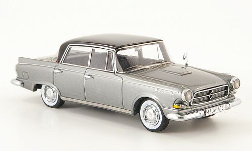 Borgward war die innovativste und edelste Automarke der 50er Jahre. Man brachte eine große Zahl an Modellen mit erstaunlichen Innovationen und machte den großen Marken in der Oberklasse Konkurrenz. Leider wurde die technische Brillanz nicht von kaufmännischem Geschick begleitet, so dass die Firma 1961 in Konkurs gehen musste. Das letzte Modell, der Borgward P 100 wird Neo Scale Models in edlem silbergrau im Maßstab 1 :43 gebaut.