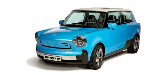 Auch im Sammlermaßstab 1:43 will Herpa seine Designstudie für die nächste Generation des Trabant bauen.