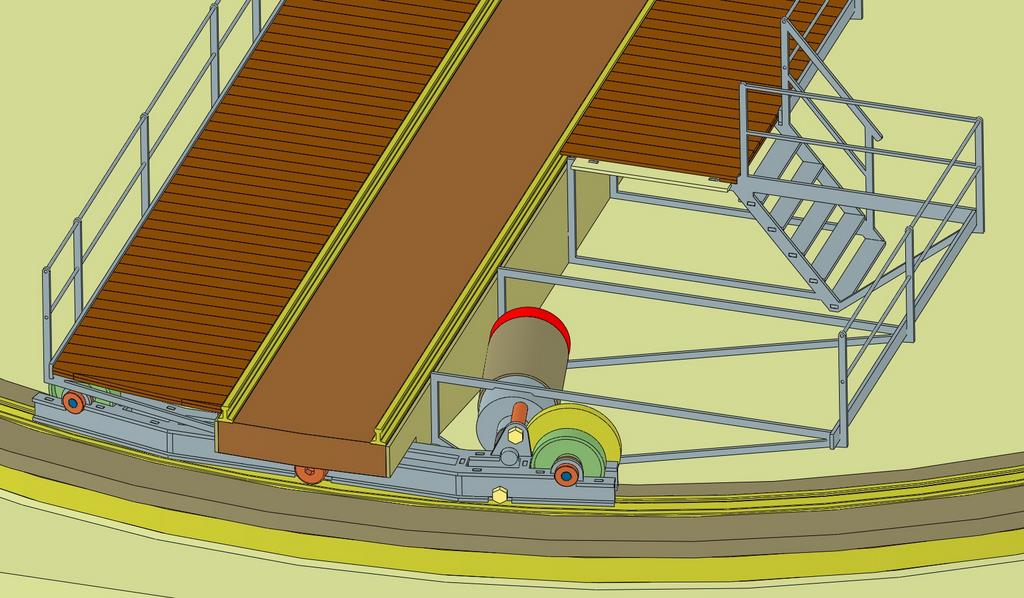 Die Verriegelung der Bühne wird mit Servomotoren erfolgen. Sechs Abgangsverriegelungsschwellen werden mitgeliefert, weitere sind erhältlich. Die Ansteuerung der Drehscheibe soll durch einen Digitaldecoder erfolgen, so dass die Bühne wie ein Triebfahrzeug gesteuert werden kann. Die Abgangsgleise sind beliebig positionierbar.