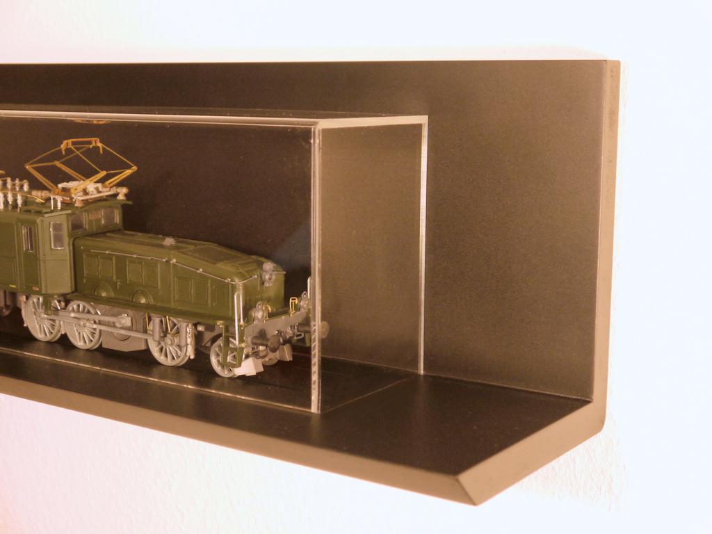 Die Firma Campibelli von Ulrich Schönfelder bietet individuelle Vitrinen für Einzelmodelle. Sie sind als Standvitrine zum Beispiel auf Sideboards oder im Regal verwendbar, lassen sich aber auch an der Wand montieren.