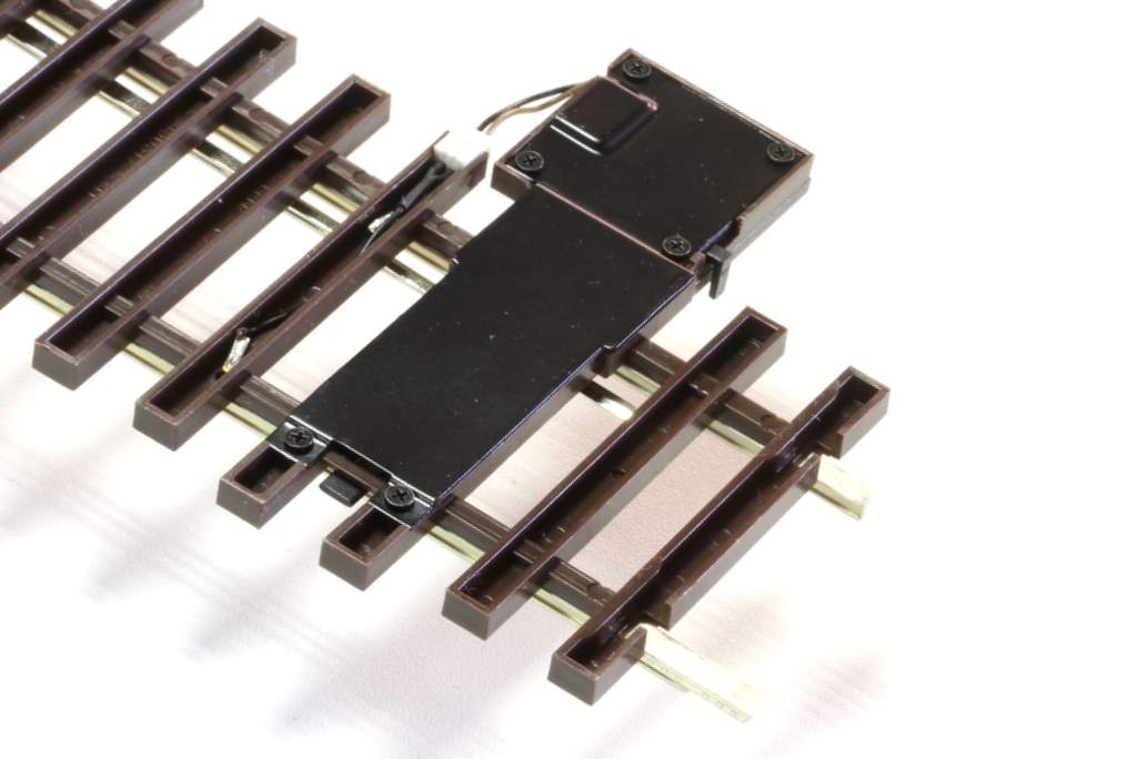 Jede der beiden Schwellen ist hohl und beherbergt eine kleine elektrische Spule, eine für jede Stellrichtung. Die beiden Schwellen sind unten mit einem Stück Kunststoff verbunden, so dass eine Mulde entsteht, in der die Stellstangen laufen. Der nach unten geschlossene Abschluss ist ein wichtiges Detail, denn so können beim Einbau der Weiche keine Schottersteine zwischen die Antriebsteile gelangen und die mechanischen Elemente auch nicht verklebt werden.