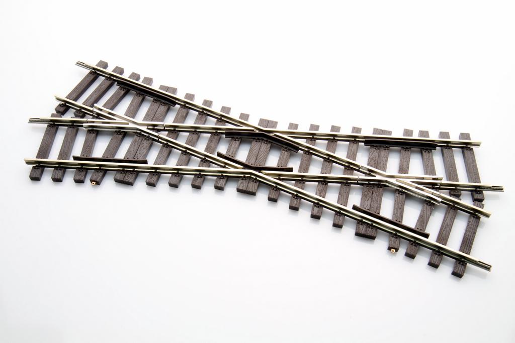 Die Kreuzung ist vorbereitet für den Einbau in einen gemeinsamen Stromkreis für beide Gleise. Zwei Lötfahnen erleichtern den Anschluss. Die Herzstücke sind isoliert, aber aus Metall; wer keinen Stromspeicherbaustein in kleinen Fahrzeugen verbaut hat, kann die Herzstücke also auch polarisieren. Die Kreuzung kostet 59,50 €. Weil die Frage sicher auftaucht: Die angekündigten Weichen sollen im Laufe des Jahres ausgeliefert werden.