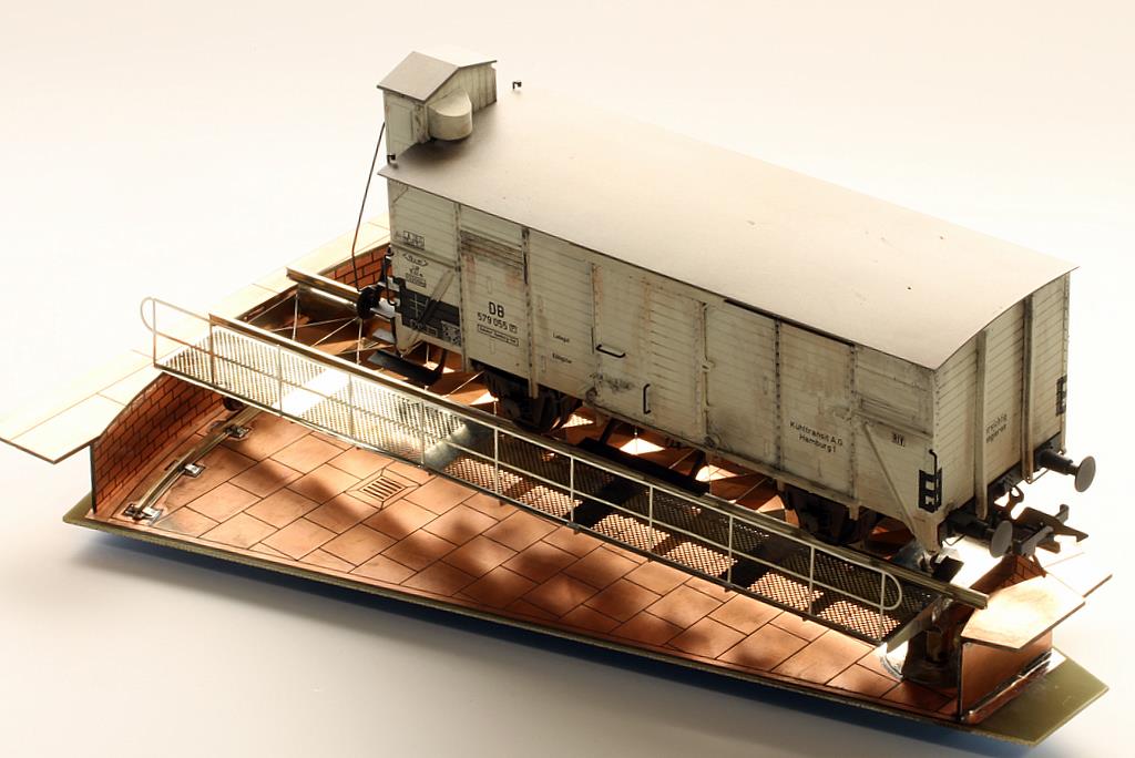 habe mir das Teil in Buseck angesehen, leider ist sie für mich auch zu kurz, da ich mit der Köf gerne rangieren möchte, sprich eine Köf und ein Wagen sollten schon drauf passen. Angeblich gibt es die Platten nicht länger, aber vielleicht kann man ja die Bodenplatte, Seitenteile 2-teilig machen, das Material lässt sich ja super mit Messing Streifen/Profilen verbinden. Die Brücke kann man ja auch verlängern, wie ich erfahren habe. Ansonsten ein Superteil,