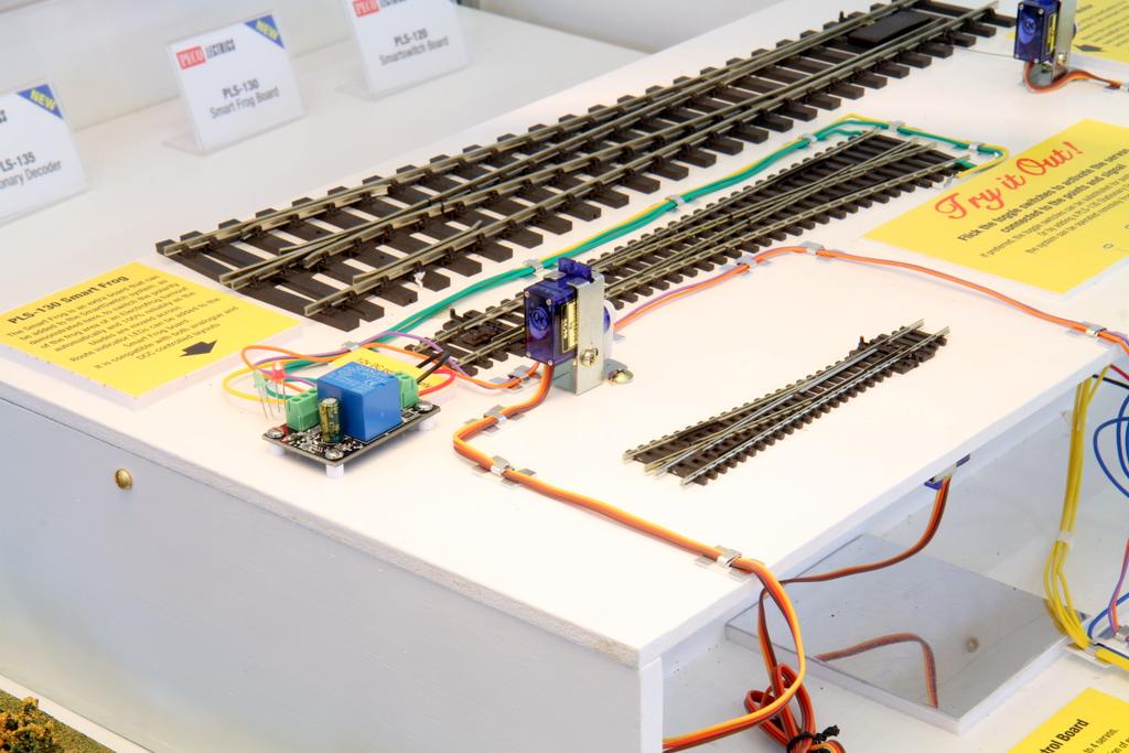 Die Platinen sind modular aufgebaut. Das preiswerte Smartswitch Board erlaubt das Stellen von vier Weichenservos mit normalem Schalter, Digitalansteuerung und Herzstückpolarisierung können separat dazu gekauft werden. Die Preise in Pfund, die auf der Messe genannt wurden, waren sehr günstig, denn man braucht nur die Elemente zu kaufen, die man tatsächlich einsetzen möchte. Lieferdatum und Preise für Deutschland stehen noch nicht fest. Mit dem System können die uralten, rumpeligen und lauten Peco Antriebe ersetzt werden.