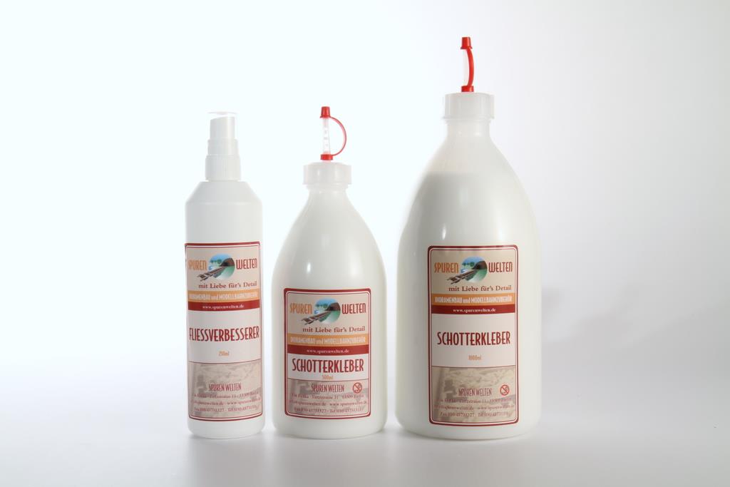 Dazu passend gibt es Fließverbesserer, Schotterkleber, der aufKunststoff-Disperionsbasis beruht, nur einmal angewendet werden muss und matt auftrocknet. 500 ml kosten 6,80 Euro.