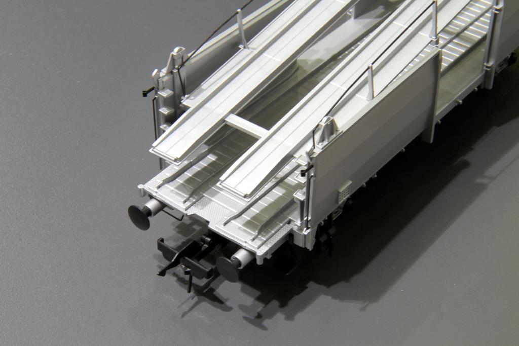 Den Prototypen fehlen noch die beweglichen Überfahrbleche und einige Oberflächengravuren, zum Beispiel das Riffelblech von Tritten und Rampe. Jeder Doppeleinheit werden zwei paar Auffahrrampen (ein Paar mehr als nötig) mitgegeben, die während der Fahrt innen in den Seitenwänden aufbewahrt werden. Zum Be- und Entladen werden sie an die Rampe geklipst.