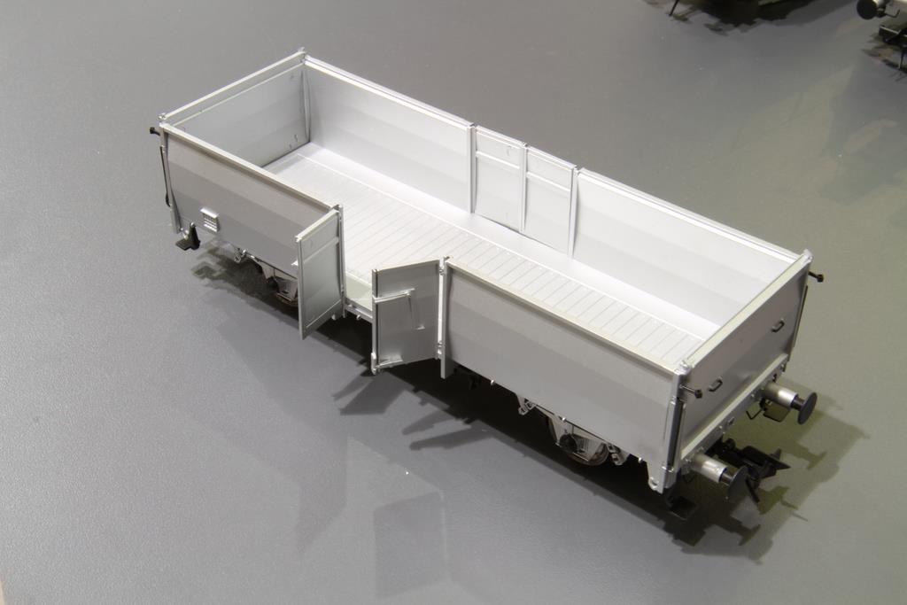 Der offene Güterwagen Omm52 war wie angekündigt mit und ohne Bremserbühne zu sehen und kommt mit innen profilierten Wänden und Türen. Letztere sind zu Öffnen. Auch die Unterseite des Wagens ist sauber nachgebildet. Die Kurzkupplungskulisse ist in den Unterboden integriert, nicht aufgesetzt.