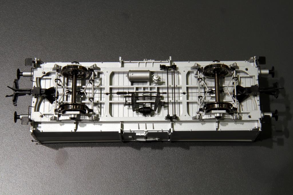 Die Wagen sind komplett aus Kunststoff hergestellt, inklusive der angebauten Kleinteile. Nur das Geländer des Off52 besteht aus Stahldraht. Die Metallachsen sind in POM Buchsen aus „selbstschmierendem“ Kunststoff gelagert.