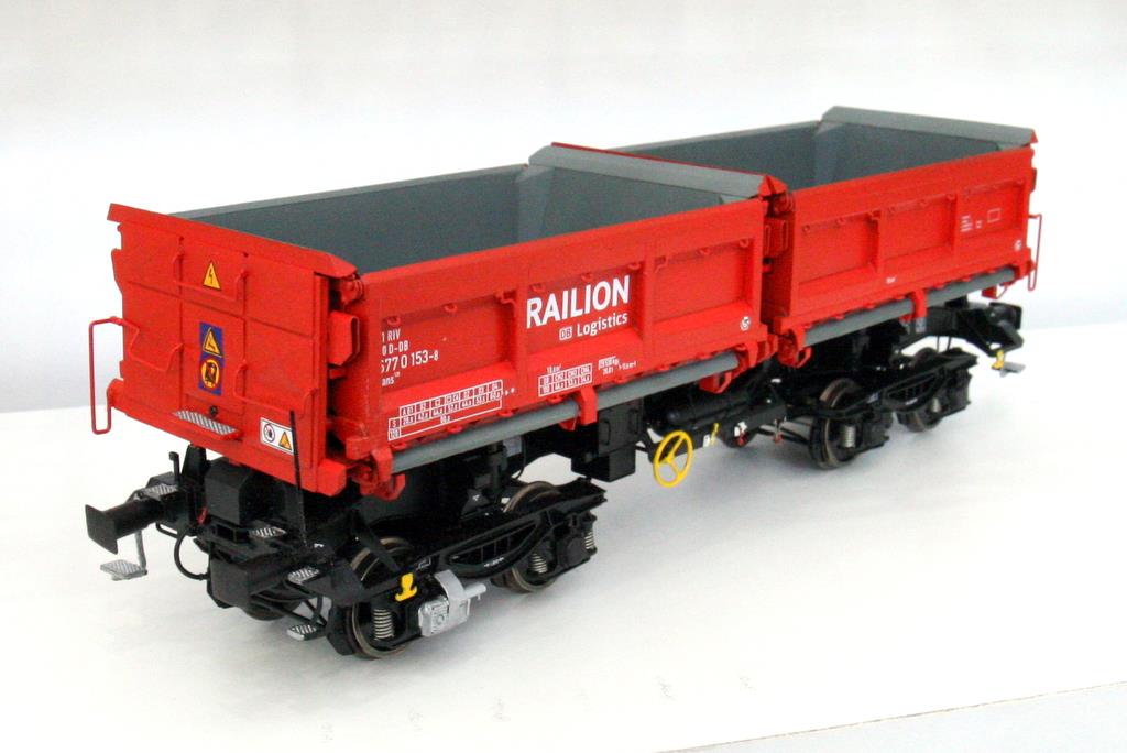 In Kürze wird der offene Schüttkippgutwagen Fans 128 ausgeliefert. Er ist komplett aus Messing gefertigt. Anders als beim Spur 1 Modell können die Mulden nicht gekippt werden; trotzdem sind alle Details nachgebildet. Es gibt den Wagen in verkehrsrot mit 5 verschiedenen Railion- und 10 verschiedenen Cargo-Nummern. Die Auflage beträgt etwa 100 Stück.