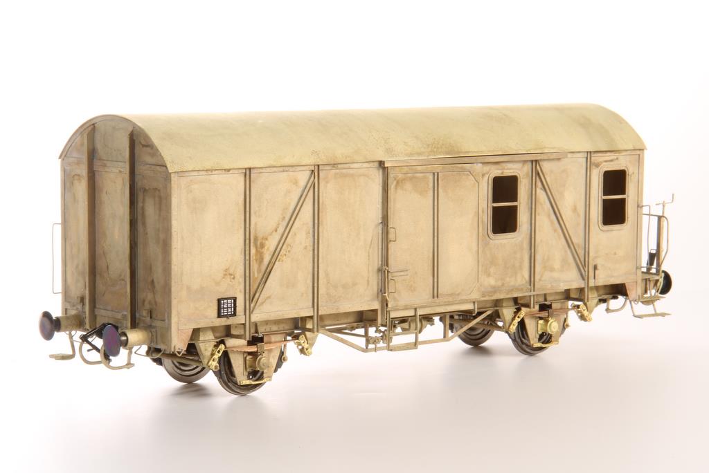 Das Laufwerk wird aus gefrästen Messingprofilen mit vorgebohrten Befestigungslöchern gebaut, der Aufbau aus gefrästen und geätzen Teilen. Die Einzelteile sollen durch Stecktechnik leicht zu montieren sein, wie auch schon bei dem vorherigen Modell, dem Güterwagen Bremen.