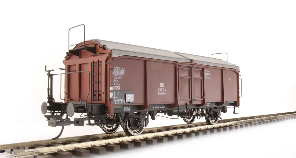 Brawa liefert dieser Tage pünktlich den Hubschiebedachwagen Kmmks 51 aus. Das Modell kommt in vier Varianten: Es gibt eine Ausführung mit und ohne Bremserbühne, und jeweils entsprechende Beschriftungsvarianten für Epoche 3 und 4.