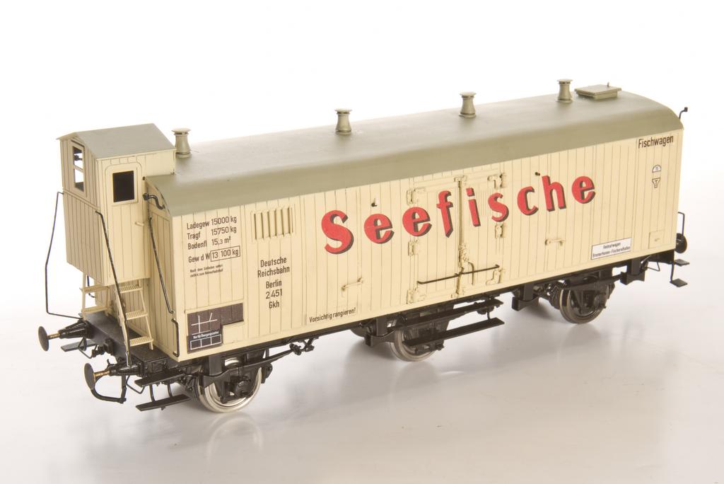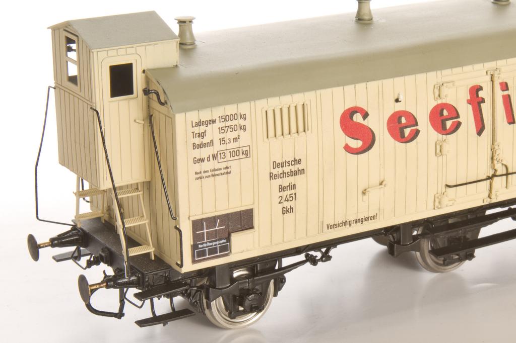 Der dreiachsige Kühlwagen Gkh ist jetzt fertigestellt und lieferbar, in verschiedenen Ausführungen und Beschriftungen nach Wunsch. Der Preis für einen Messingbausatz in Basisausführung Epoche 2 beträgt 698,-€.