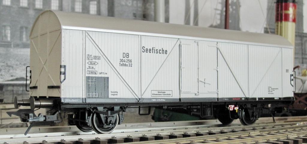 Die bereits bekannten Kühlwagen Tns 31 kommen in einer neuen Version. Der Tnfhhs 32 ist für Seefische gedacht und hat daher keine Lüfter auf dem Dach und auch keine seitlichen Eisluken, denn die Fische wurden ja in mit Eis ausgelegten Kisten transportiert.