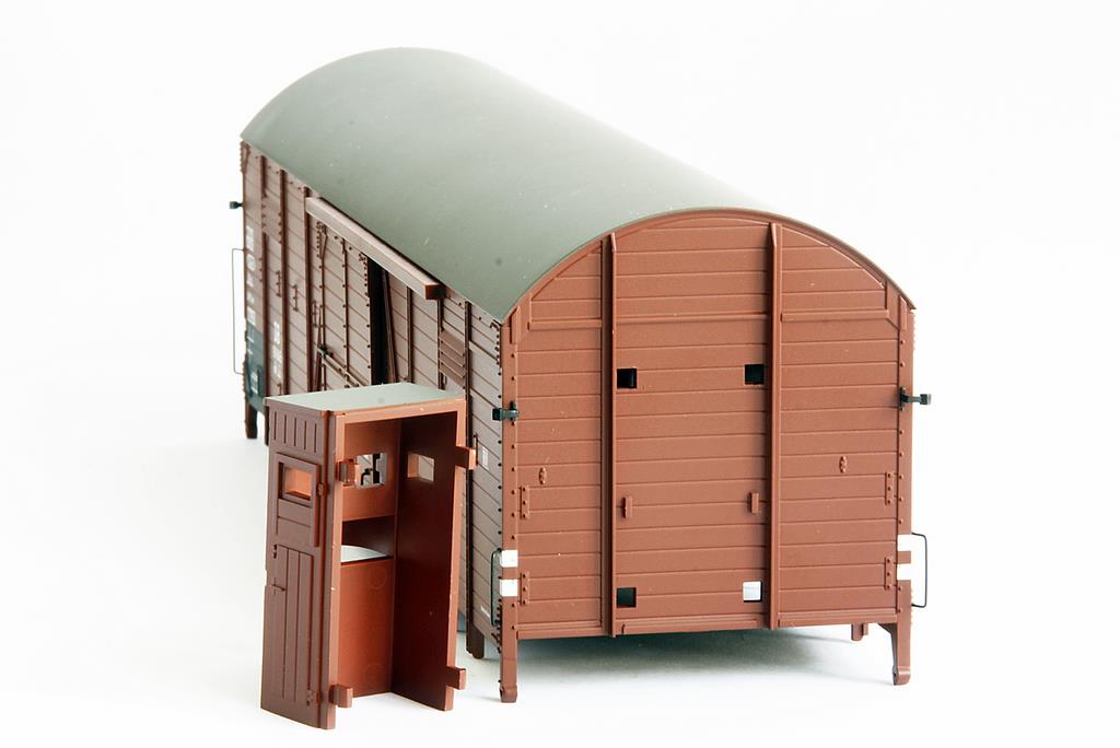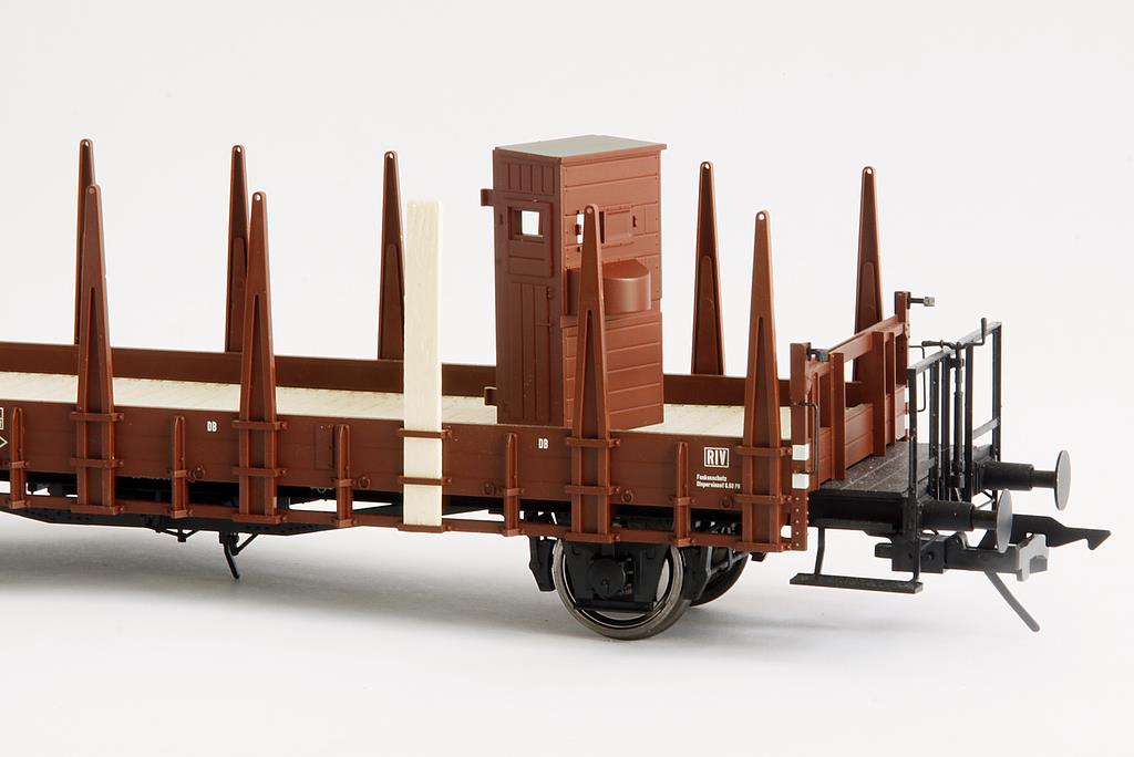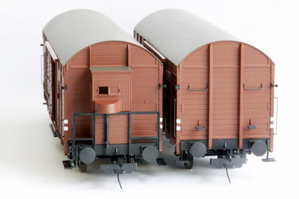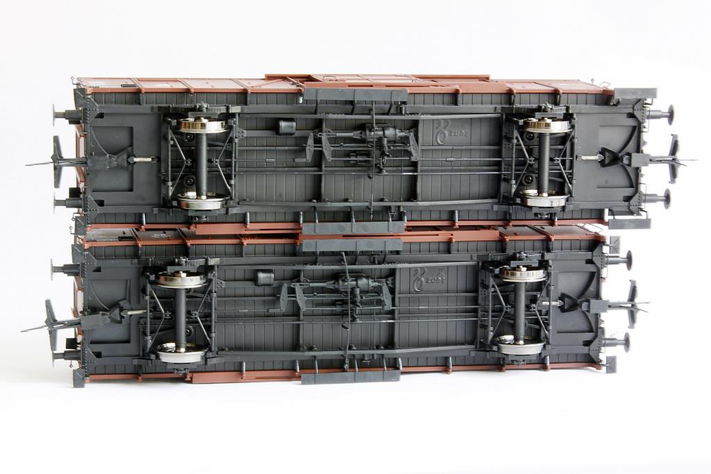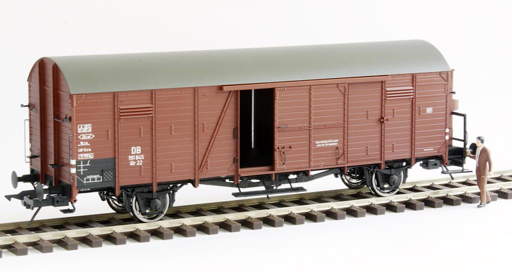 Das Modell gibt einen Wagen der sog. Austauschbauart wieder, wobei die Laufwerke mit kurzen Federn und Laschengehängen noch Kennzeichen der vorherigen Verbandsbauart aufwiesen. Mit rund 29qm Ladefläche und zwei Meter breiten Türen wurden sie vor allem genutzt zum Transport nässeempfindlicher Güter. Geliefert wurden sie mit und ohne Bremserhaus, der Radstand betrug unabhängig davon immer 7m, die Überhänge waren 350mm je Seite länger, wenn der Wagen das Häuschen hatte. Ob die Wagen bei der DB ihr Bremserhaus verloren und dann nur eine Bühne blieb, lässt sich bei Carstens leider nicht feststellen. Vielleicht kann ein Leser dazu Auskunft geben. Denn im Rahmen möglicher Varianten wäre das interessant.