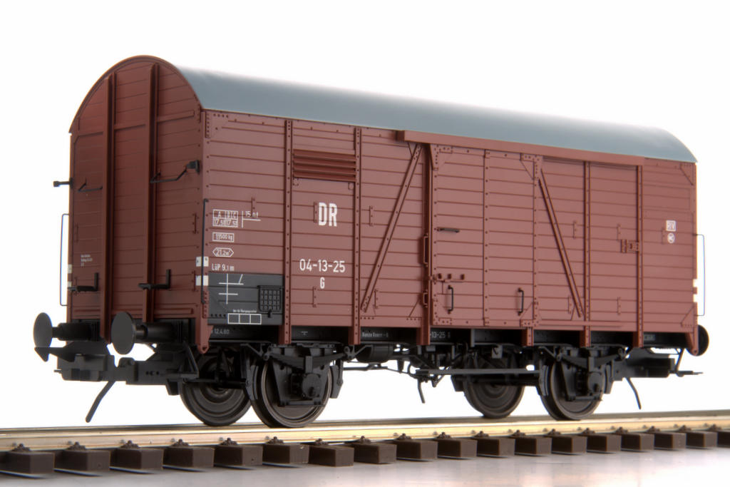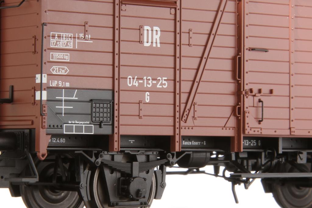 Der Ost-Kassel hat alle technischen Details der neuen Güterwagen Generation: Dunkel vernickelte Räder, Kurzkupplungskulisse mit magnetischer Fixierung der Mittelstellung, und natürlich der bekannt hohe Detaillierungsgrad der Lenz Modelle.