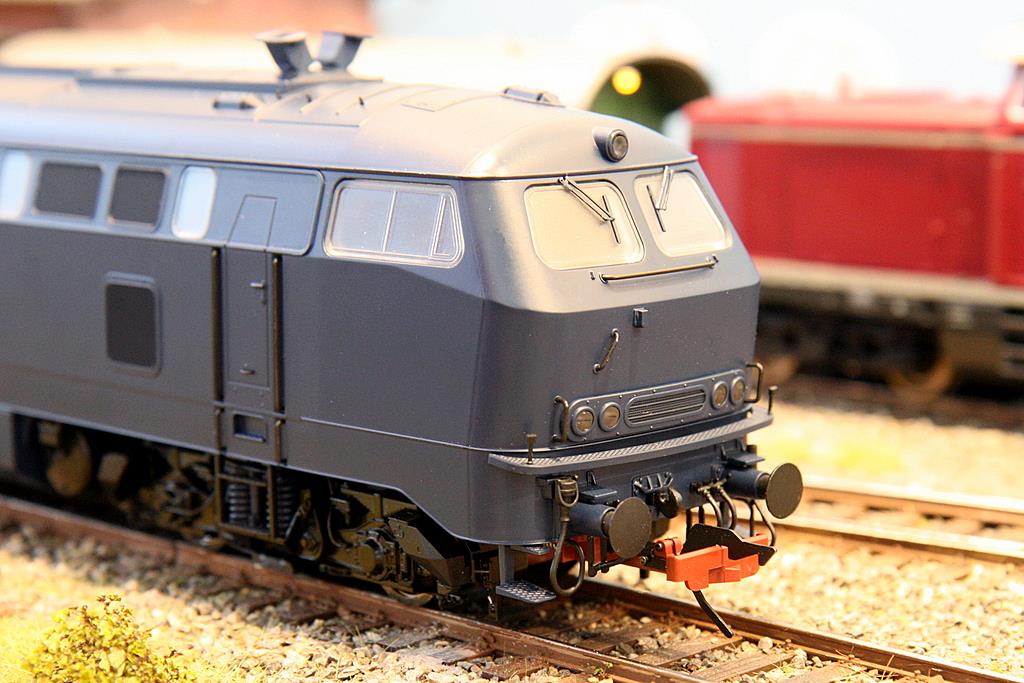 Die V160 und BR218 waren als bereits motorisierte Handmuster zu sehen. Zwar fehlen noch ein paar elektronische Feinheiten, aber Gehäuse und Drehstelle machen einen sehr detaillierten und ausgereiften Eindruck.