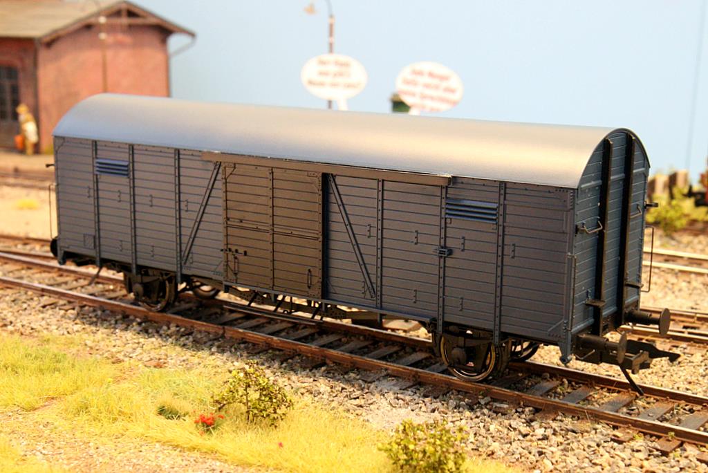 Der Güterwagen Dresden kommt mit und ohne Bremserhaus; beide Versionen waren in unterschiedlichen Entwicklungsstadien zu sehen. Wie schon beim G10 gibt es Türen zum Öffnen und viele separat angesetzte Tritte und Griffstangen. Besonders aufwendig bei der Modellumsetzung ist hier die als Dachverlängerung nach außen stehende obere Gleitschiene der Schiebetür und der Übergang zum Dach. Das muss auch bei häufiger Benutzung mechanisch stabil sein, optisch einwandfrei und selbstverständlich vorbildentsprechend – und auch noch leicht zu montieren.