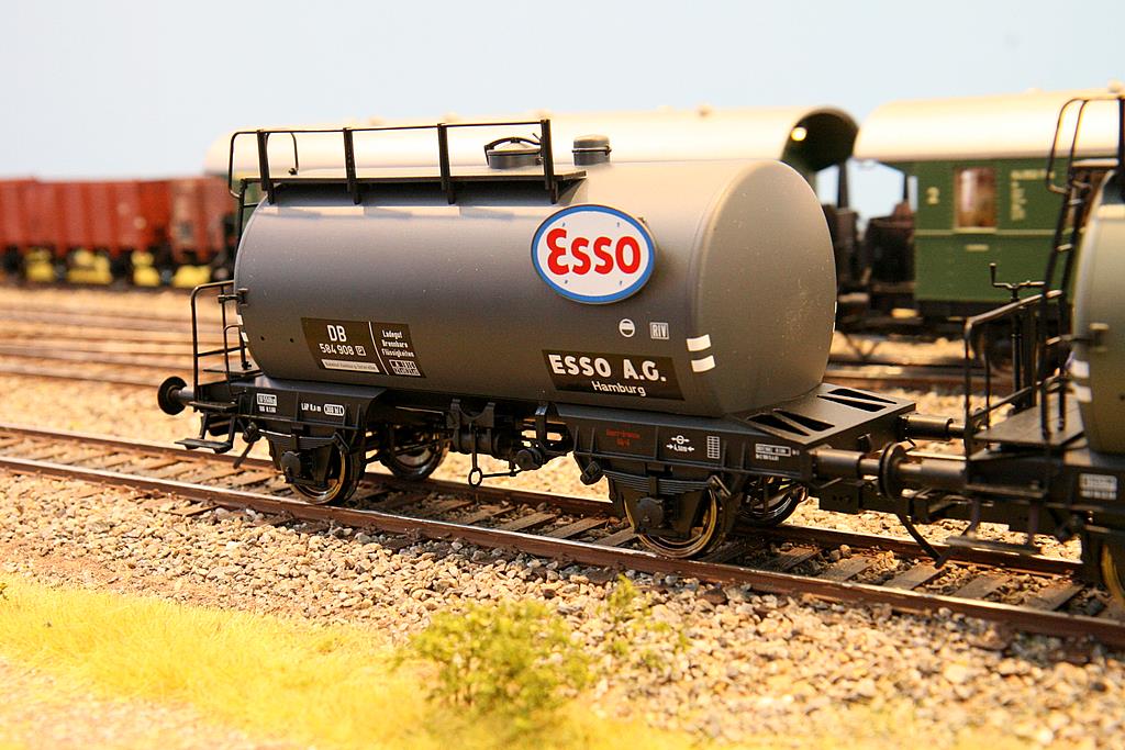 Die Kesselwagen kommen schon bald in weiteren, zusätzlichen Farb- und Bedruckungsvarianten. Shell und Esso Wagen sind, wie auch schon der Aral Wagen erfreulicherweise auch in grau mit buntem Firmenlogo gehalten, und nicht, wie häufig bei anderen Herstellern als Modellumsetzung zu sehen, mit knallbuntem Kessel. Mit weiteren Nummervarianten nähert sich der Kesselwagenfreund mit schnellen Schritten seinem Ganzzug.