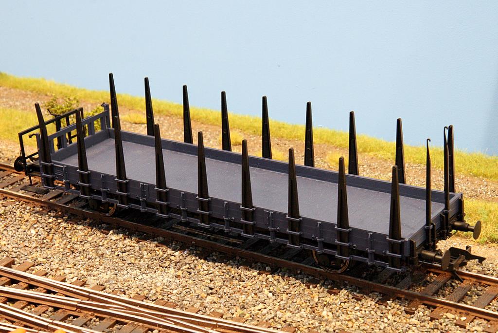 Der Rungenwagen war in der Version mit Bremserbühne zu sehen. Die Rungen sind separat steckbar, was einerseits den Spielspass fördert, da man vorbildgerechte Ladeszenen nachstellen kann, und es andererseits leicht macht, eventuell beschädigte Rungen zu ersetzen.