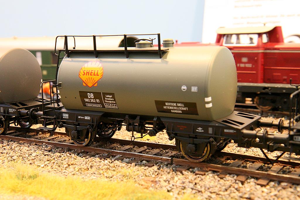 Neben den Farb- und Bedruckungsvarianten der Kesselwagen waren auch die V160 /BR 218, der Rungenwagen und der Güterwagen Dresden zu sehen. Auch die Muster des Schienenbus VT98, Steuerwagen VS98 und Beiwagen VB98 waren ausgestellt.