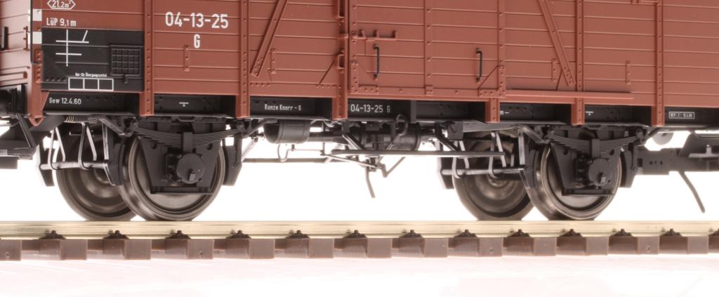 Lenz tauscht seit ein paar Wochen Radsätze um: Die ersten Modelle des kurzen Güterwagens Kassel Gr20 und seine Verwandten, der Geh Milchwagen und sein Nachfolger, der G19, sowie der V23 Viehwagen und auch die By3g wurden in den letzten Monatem mit den neuen, dunkel vernickelten Radsätzen ausgeliefert. Durch ein Malheur bei der Produktion bekamen die Wagen etwas hohe Radkränze, höher als sonst bei Lenz üblich. Obwohl die Maße der Radsätze innerhalb der NEM Norm liegen und die Räder auch einwandfrei auf Lenz Gleisen rollen, stört die Optik doch vorbildorientierte Modellbahner.