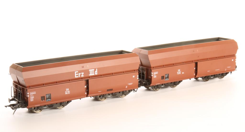 Die Modelle sollen in Kürze ausgeliefert werden. Es gibt Versionen in Epoche 3 Beschriftung mit oder ohne Erz IIId Schriftzug (OOtz 50 und Fad-50) sowie eine Epoche 4 Beschriftung, zu der Zeit heißt der Wagen Fal 167. Für jede Variante gibt es 5 Betriebsnummern. Ein Einzelwagen kostet 99,- Euro, ein Fünferset 475,- Euro. Auch ein Set „langer Heinrich“ mit 10 Wagen plus V200.1 in Digitalversion wird für 1.245,- Euro angeboten.