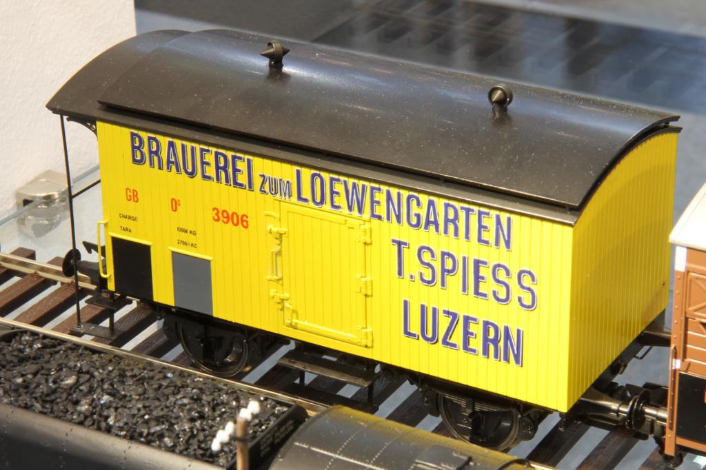 Der Universal-Güterwagen K2 der Schweizer Bahn war in braun und in gelber Werbelackierung zu sehen. Die Wagen sind ordentlich detailliert und allesamt mit Kurzkupplungskinematik und NEM Schacht ausgestattet. Viele Griffe, Geländer und die Lüftungsklappen sind angesetzt, nur der Türhaken macht einen sehr groben Eindruck. Ich bin kein Fachmann für Schweizer Wagen, aber die Beschriftung der Prototypen scheint etwas spartanisch ausgefallen zu sein. Man darf auf das endgültige Modell, das für 85 Euro (UVP) zu haben sein soll, gespannt sein. Neben der gezeigten braunen Ausführung soll auch eine graue Version und eine braun/graue Lackierung kommen, und vier Bierwerbewagen mit Wärmeschutzdach und geänderten Türen, jeweils beschriftet für Epoche 2 und 3.