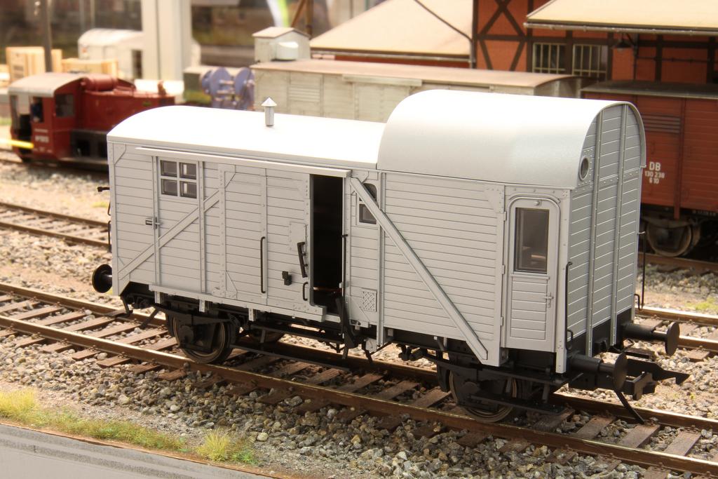 Der Güterzugpackwagen Pwg pr 14, von dem schon recht weit fortgeschrittene Muster aller drei Versionen auf Messen zu sehen waren, wird mit neuen Details vorgestellt. Es wird zwei Versionen mit Dachkanzel geben (mit und ohne Verstrebungen) und eine ohne Dachkanzel, dafür aber mit seitlichem Ausguck. Alle drei Varianten erhalten einen Funktionsdekoder und Innenbeleuchtung mit Energiespeicher.